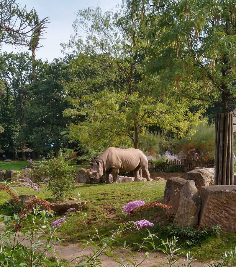 De wellicht grootste trekpleister van het park zijn de neushoorns. Ze staan apart, maar hebben een prachtig verblijf. Hoe trots het park er op is blijkt wel uit de tekst die bij de olifanten op het bordje staat. Van een van mijn nichtjes moest ik alles in het Duits voorlezen, dus deed ik dat plichtsgetrouw, maar deze olifanten gaan vetrekken als hun tijd is gekomen. Dan wordt hen verblijft overgenomen door de neushoorns. De kooi van de jachtluipaarden is weer behoorlijk retro. De grote kangoeroes krijgen binnen kort een nieuwe groter verblijf. Er wordt hard gewerkt in en aan dit park.