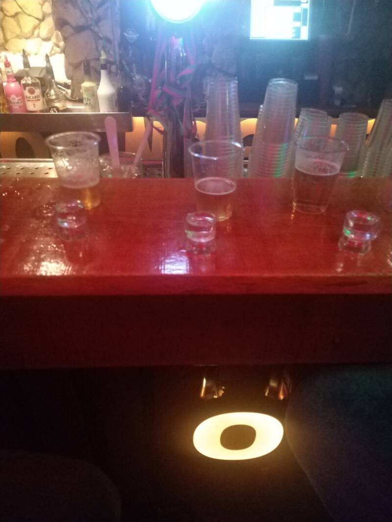 We gingen aan de bar zitten, bestelden bier en keken rond. Er is bijna helemaal niemand. Een paar dames, een barman en 2 wat vagere figuren. Daarnaast een klein meisje en een puppy. Na wat biertjes en een rondje fris gingen we over aan de shotjes. Of ja, er stond een shotglas, waar water in bleek te zitten. Geintjes, die we goed kunnen hebben. De 2 mannen die in de kroeg zaten gaan samen naar het toilet. Wat we opmerkelijk vonden. Even later een geschreeuw van het toilet. Papa! Papa! Papa! Het meisje zit waarschijnlijk op het toilet, alleen, verlaten en roepende om hulp. Een van ons attendeerde de man, van wie we vermoeden dat het de vader, om eens te gaan kijken. Waardeloos dit. Zelf gaan zuipen, je dochter al meenemen is al kansloos. Niet naar haar om kijken. Vul zelf maar in.