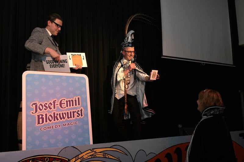 Als we klaar zijn met eten gaan we langzaamaan richting Kleppenburg. Nog een keer zwaai ik vrolijk met mijn scepter in het rond over straat en we verzamelen achter het podium voor de jaarlijkse uitleg. Daarna ga ik nog een keer als laatste in de rij de polonaise in. Dit gevoel is magisch en met geen pen te beschrijven. Ondanks dat het nog niet zo druk in, zet ik de polonaise in zoals je van een Prins mag verwachten. Na een paar nummers van de hofkapel, wat leuk hen weer te horen spelen, komt er een tonprater in de vorm van Brandon Smeets. Hij is weer steengoed en zet een raadsdame met 2 pleerollen voor schut. Daarna mag ik naar boven komen vanwege de inclusiviteit. Het is geweldig om even hier te staan en ik heb er lol in. Timmchen is mijn nieuwe naam. Mijn partner mag eveneens naar voren komen. Dat we even door de mangel worden gehaald heerlijk toch? Ik mag 3x voordragen, ik kan niet lezen! Ik kan niet lezen. Dit zorgt voor gelach in de zaal. Na nog een paar truckjes en grappen vertrekt de komiek en gaan we ons opmaken voor ons aftreden.
