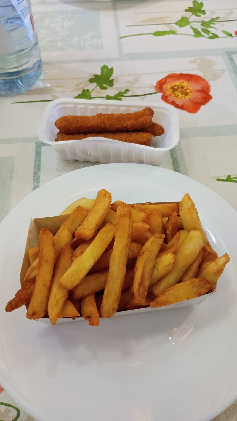 Het is al etenstijd en de boodschappen zijn al gedaan. Beide zaken moei ik mee als het gewenst is. Deze ronde echter niet. Er wordt een lijstje gemaakt voor de frites en ze worden gehaald. Hier ga ik mietershard van genieten. Er gaat niets boven zo'n bakje Belgische frites compleet met slappe curry en Belgische mayo. Daarnaast bestel ik kipfingers, omdat ik die iemand hoor roepen. Daarbij, bi-snacksueel ben je of niet, een bamischijf. Bami's blijken ze niet te hebben en als vervanger krijg ik de meest getoetste snack van het land. De sitostick. Of de bestelling nou wel of niet compleet was, ik eet voor 1,5 persoon frites. Er blijft namelijk nogal wat over. De kinderen hebben het er niet zo op.