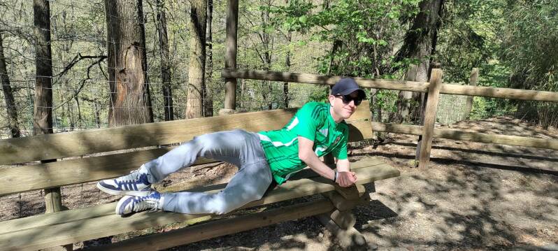 De volgende ochtend wordt ik rond 08:00 uur wakker. Ik dommel nog wat weg als om 09:15 uur een neefje me wakker komt maken. Ik sta in alle rust op en kom overdreven amicaal de keuken binnen. Het plan is om na het ontbijt, wat gigantisch gedoe trouwens met zoveel mensen aan tafel, naar de dierentuin te gaan. Deze ligt in een ‘soep’ele omgeving. Althans dat doet Bouilon vermoeden. Het is een ritje van 3 kwartier waar we nog net niet onze onderkant van de auto aan gort rijden als we een overweg overgaan. Met 30 kilometer per uur is dat al te snel. We rijden over een slingerweg naar de dierentuin toe. Wat een locatie en prachtige plek is. We sjouwen ons een ongeluk bult op en af.